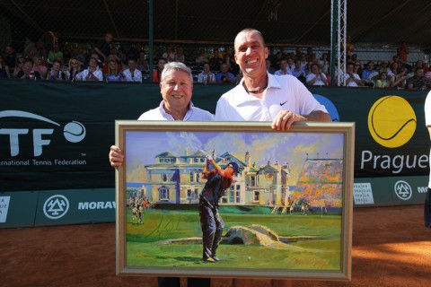 Po devětatřiceti letech se Lendl vrátil na pražskou Spartu, hrál tu naposledy jako žák, Jirku Nováka v úsměvné a ohleduplné exhibici porazil 8:5. „Cítím se tu výborně, je dobře, že přišlo tolik lidí, to se vždycky hraje líp,“ komentoval Lendl doslova narvanou Spartu. Lendlovi je dvaapadesát, za poslední dobu se hodně zlepšil, je znát, že na dvorci tráví přece jen více času. S Novákem hrál předloni při UniCredit Czech Open. „Jirka zestárl, ty dva roky jsou na něm přece jen znát. Já taky zestárl o dva, ale je to menší procento v 52 letech než v 35 letech,“ smál se. Po dvou zápasech vede Lendl nad Novákem 1,5:0,5, jejich první zápas totiž skončil netradiční remízou 5:5. „Jsme průkopníci tenisové remízy a čekal jsem, že to tak nenechá. Má to v ruce,“ řekl Novák. Příjemnou atmosféru měl i ceremoniál po zápase, „negolfista“ Miroslav Černošek předal Lendlovi obraz Tigera Woodse i proto, že dobře ví, že Ivan se své velké sportovní lásce moc věnovat nemůže, oběma účastníkům exhibice ještě poblahopřáli primátor Bohuslav Svoboda, šéf českého tenisu Ivo Kaderka a Petra Langrová.
